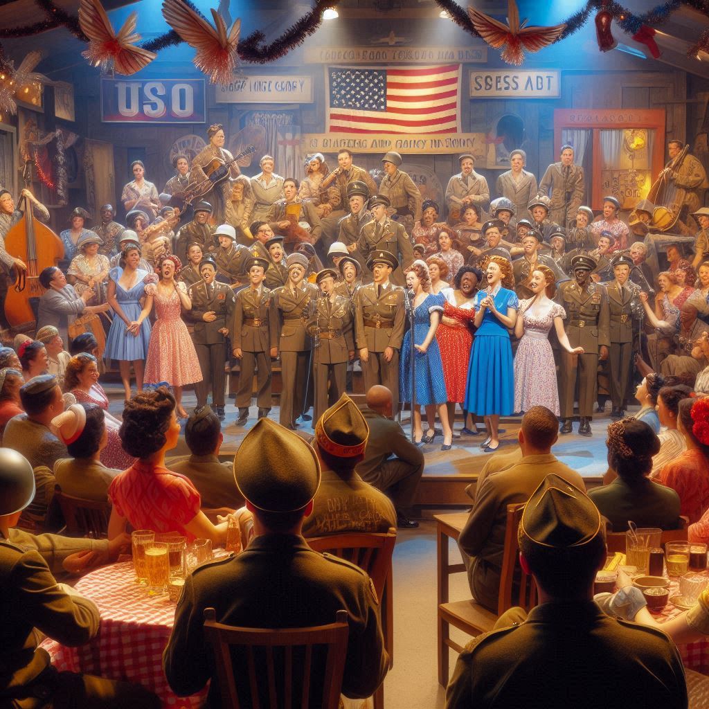 In WWII, USO shows provided a needed escape for service members, offering them a chance to relax, connect, and experience a slice of civilian life. These traveling shows brought live entertainment to military camps across the country, featuring professional actors, producers, radio hosts, and dancers. Performers like Bob Hope, the Andrews Sisters, and Marlene Dietrich volunteered their time.